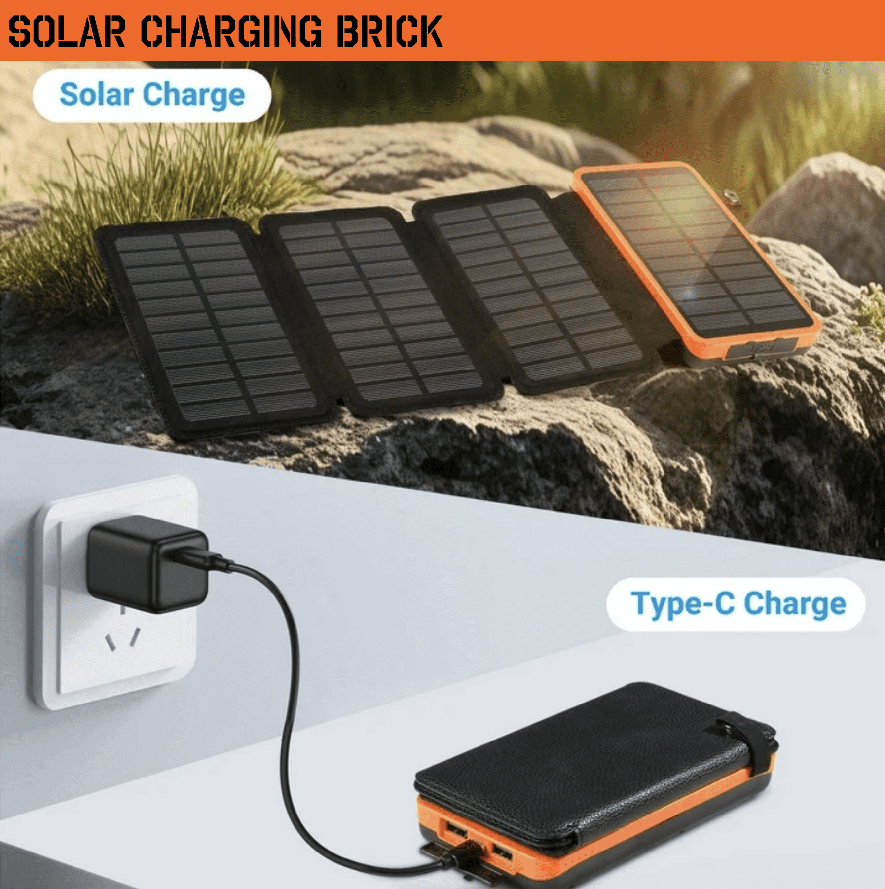 • This cell phone portable charger supports type-c and solar charging, with the solar option perfect for outdoor use. Both options adapt to different environments, meeting the charging needs for daily and outdoor use.
