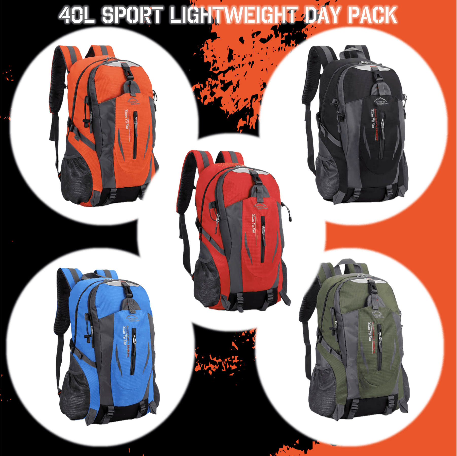 Our outdoor day pack is crafted from premium nylon fabric for ultimate durability and performance. Designed to carry up to 15 kg (33 lbs), this lightweight backpack weighs just 0.51 kg (1.12 lbs) and offers an impressive 40L capacity—perfect for all your adventures, whether hiking, climbing, or cycling.