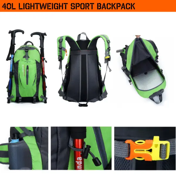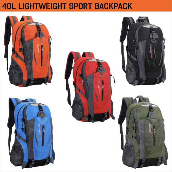 Our outdoor backpack is crafted from premium nylon fabric for ultimate durability and performance. Designed to carry up to 15 kg (33 lbs), this lightweight backpack weighs just 0.51 kg (1.12 lbs) and offers an impressive 40L capacity—perfect for all your adventures, whether hiking, climbing, or cycling.