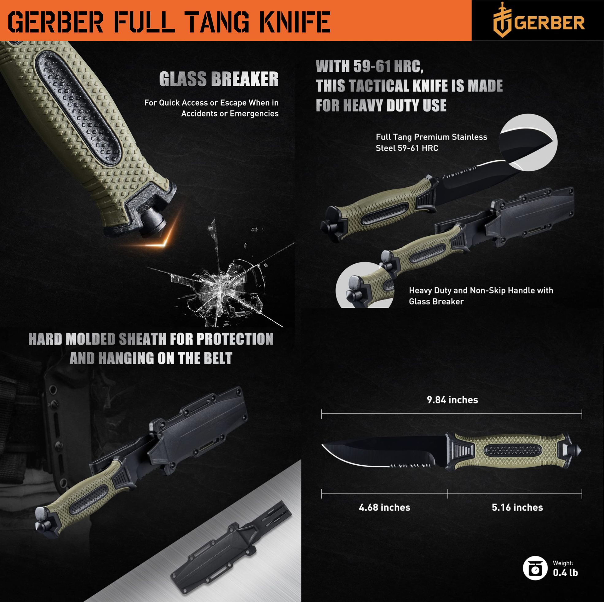 This professional Tactical Gerber Knife is a must-have for hikers, campers or emergency scenarios.