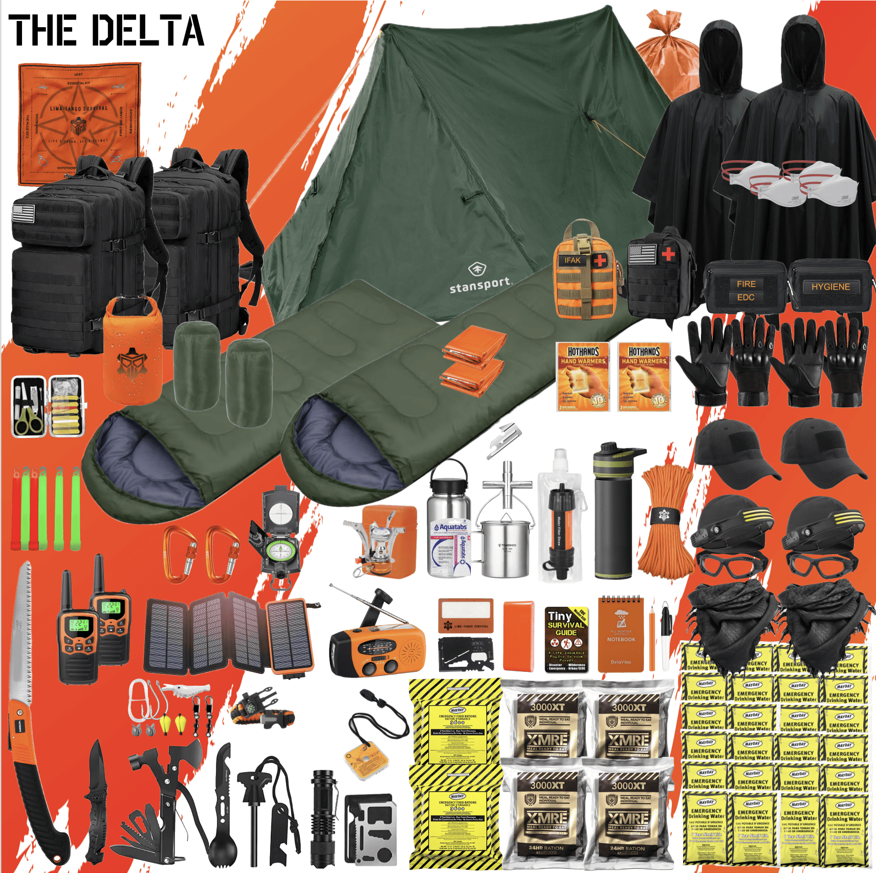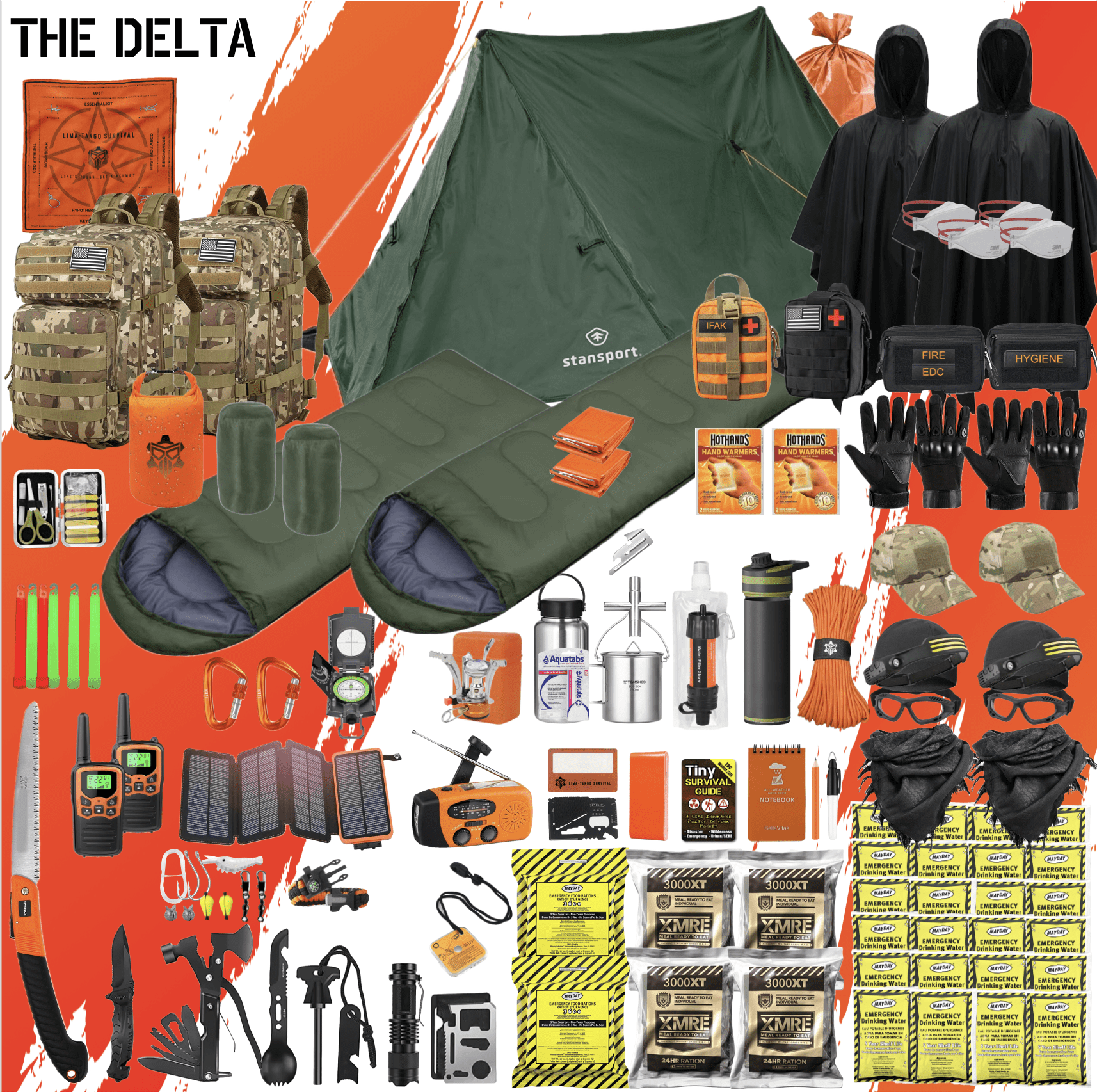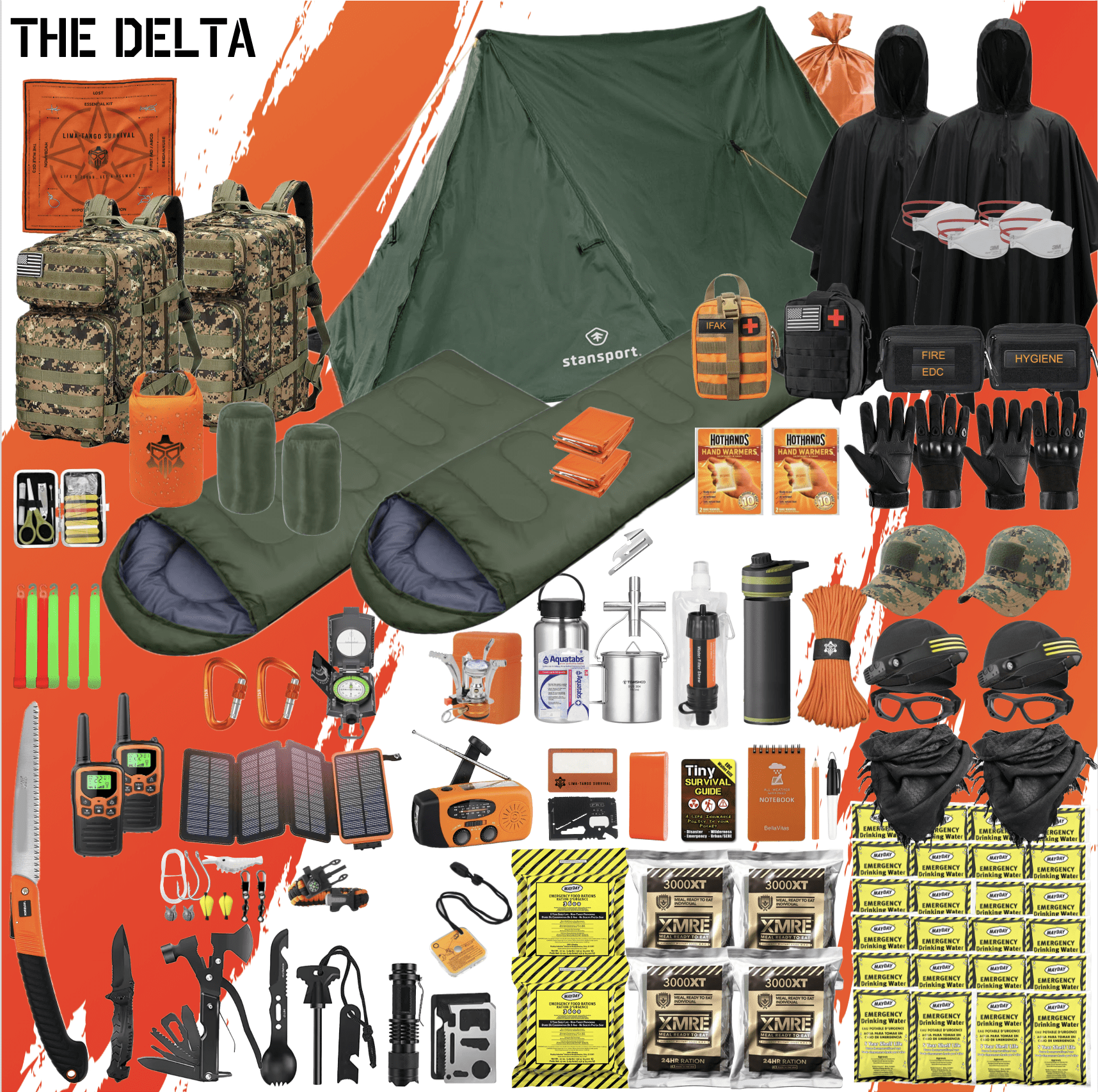 Whether it’s for SHTF, Zombie apocalypse, emergencies, camping, hiking, survival, bug-out, evasion, or other operations in non-permissive environments, THE DELTA ensures you’re prepared for 5-7 days of survival with over 300 top-tier items and name brands.