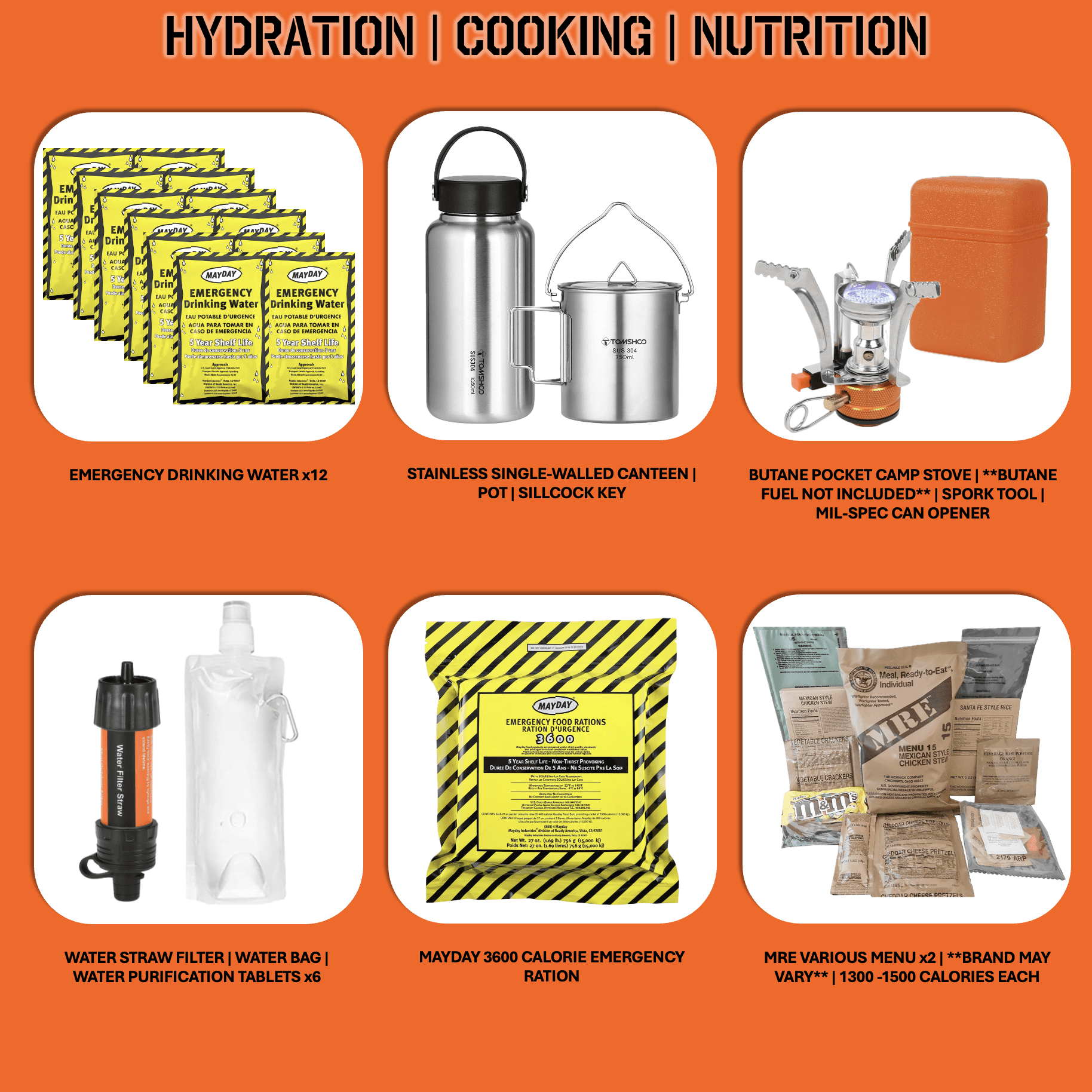 - MAYDAY Emergency Ration: 3600 Calories