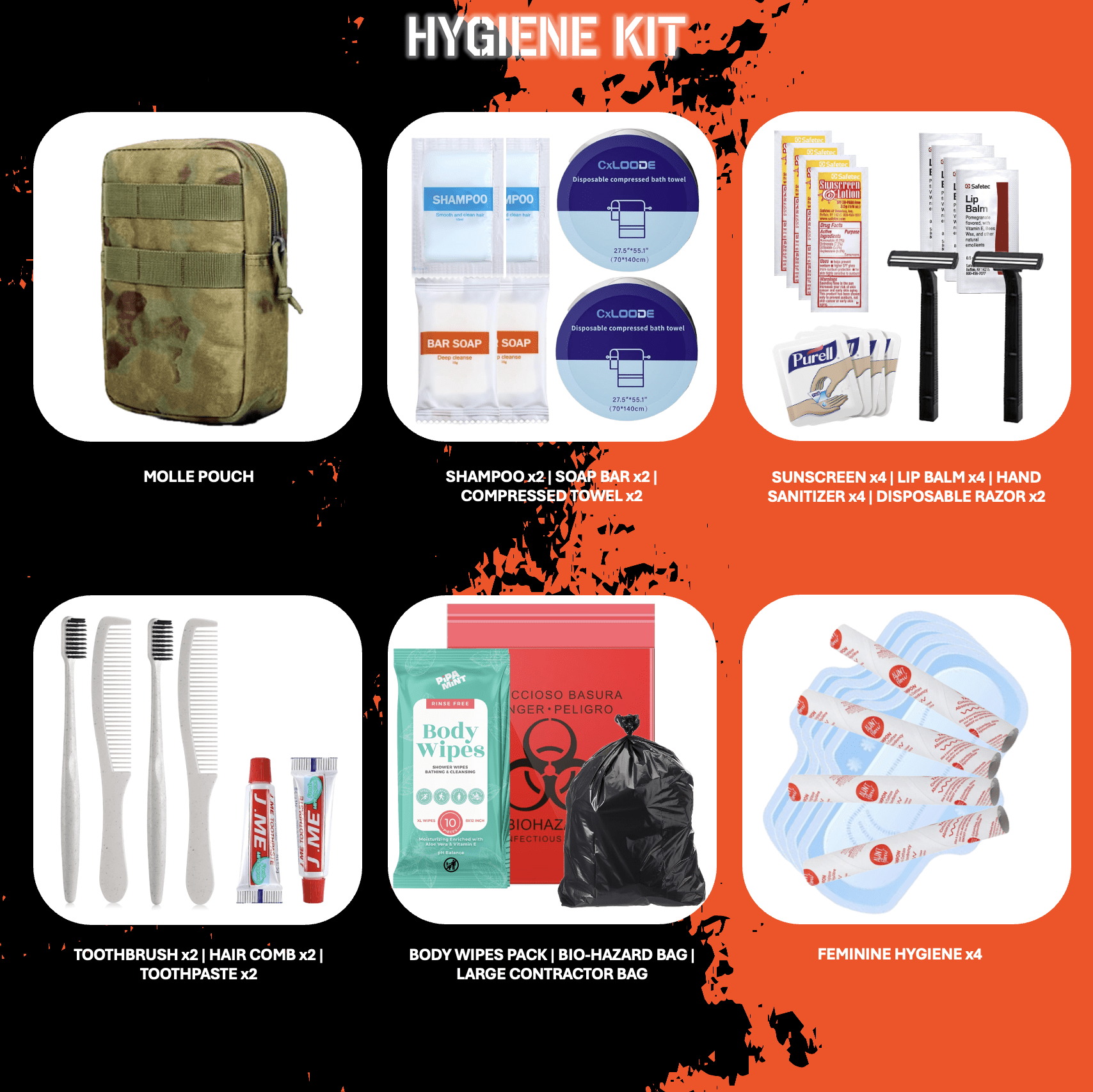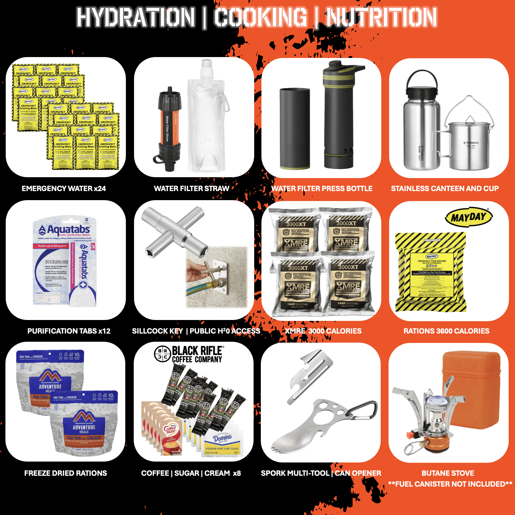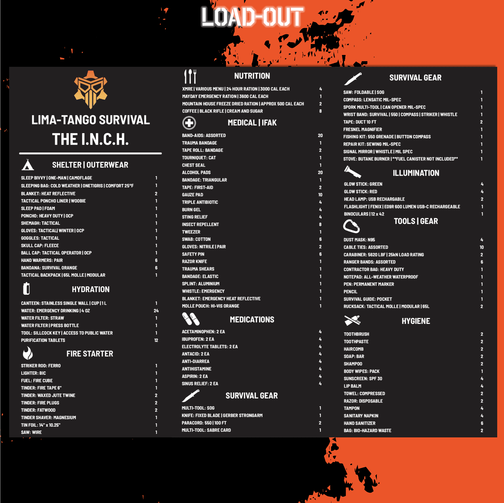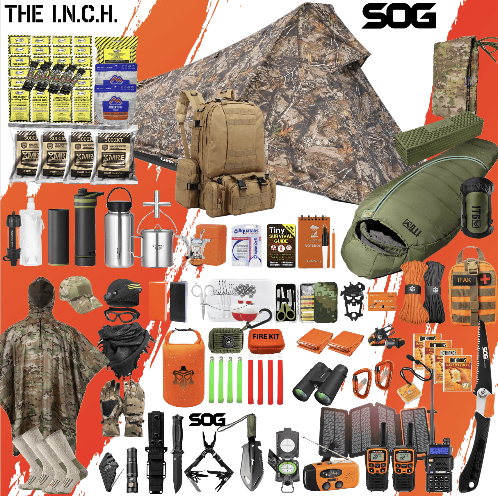 Whether it’s for SHTF, Zombie apocalypse, emergencies, camping, hiking, survival, bug-out, evasion, or other operations in non-permissive environments, THE I.N.C.H. ensures you’re prepared for 7+ days of survival with over 300 top-tier items and name brands.