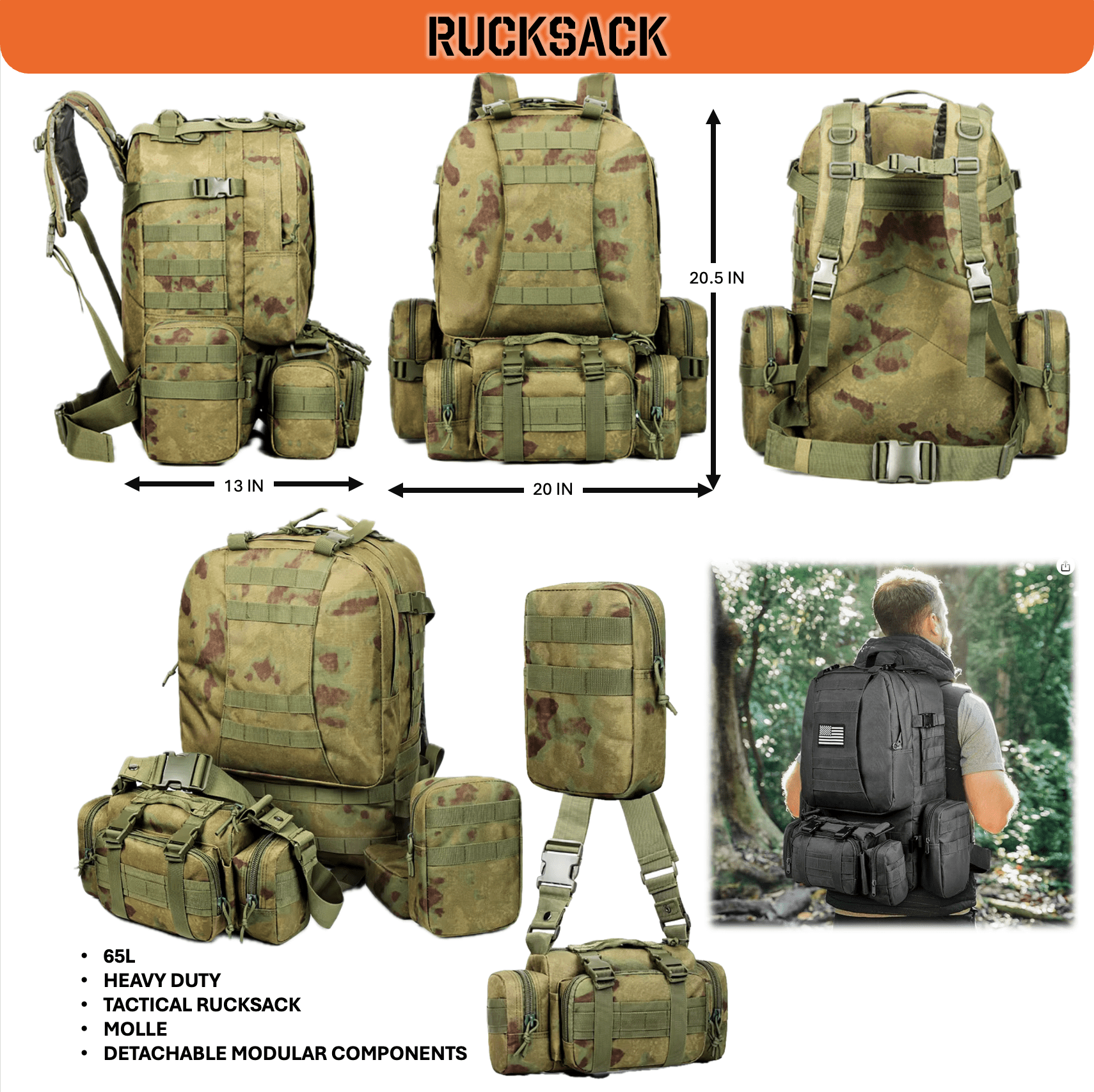 - Tactical Backpack | 65L | Modular | Molle