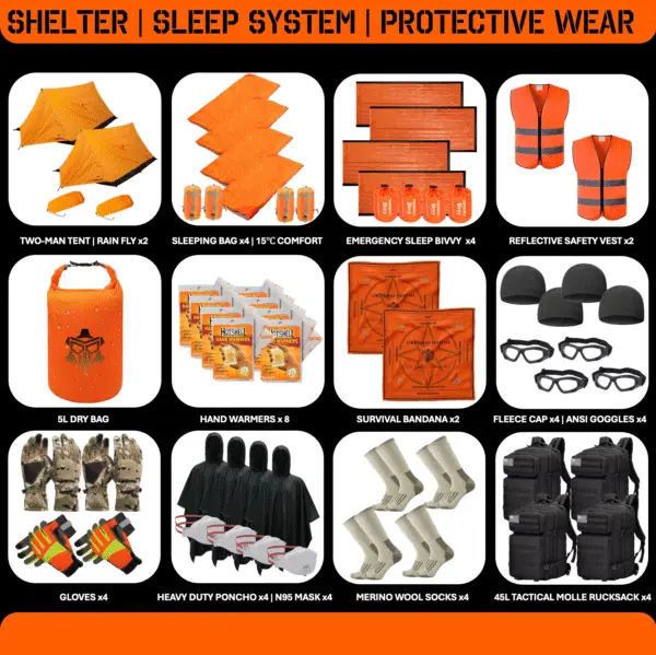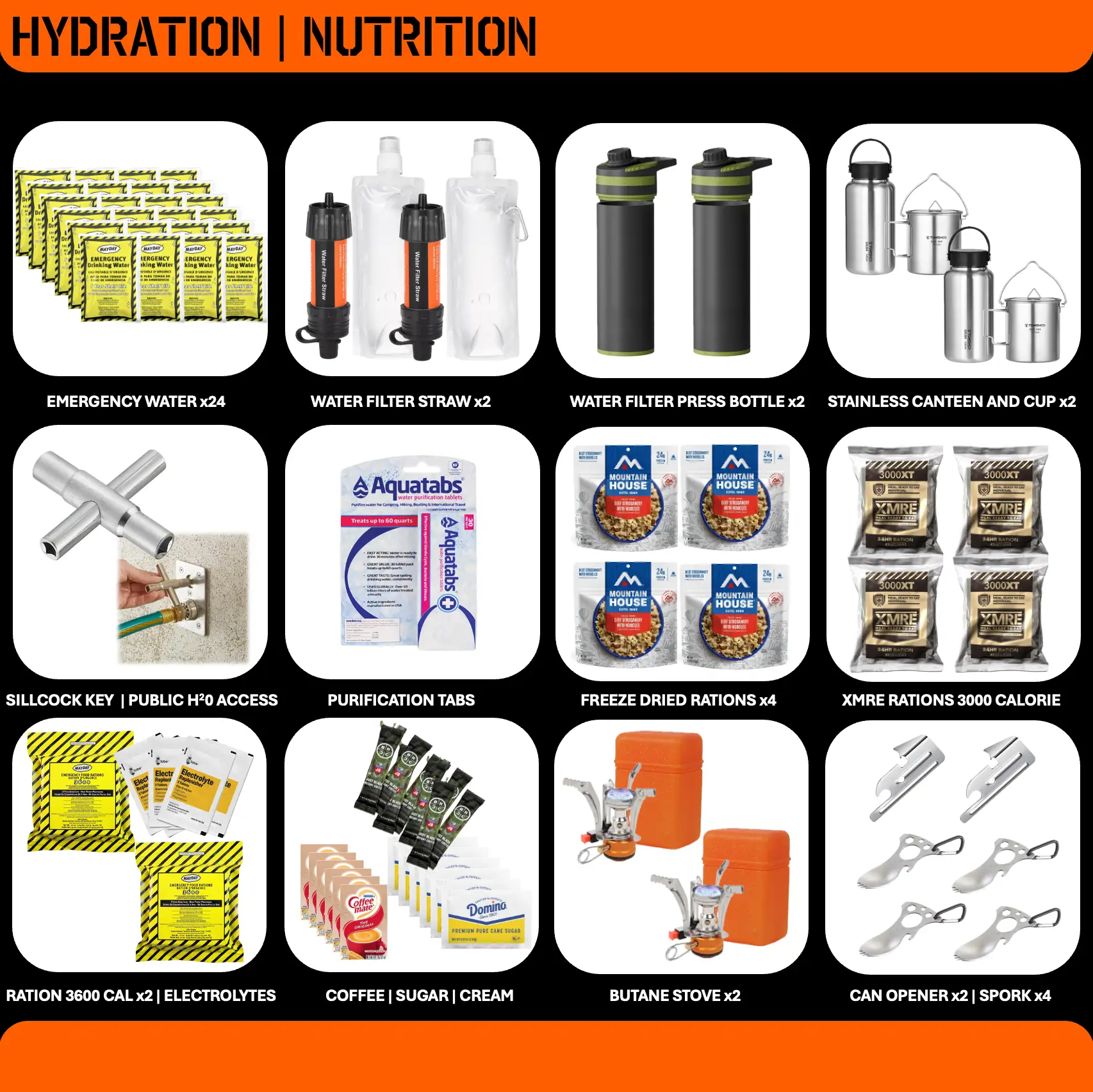 Introducing THE DASH-FOUR. This is the ultimate survival kit designed for a four-man team facing extreme conditions for 72+ hours. Whether it’s for SHTF scenarios, emergencies, or non-permissive environments, THE DASH-FOUR ensures you’re prepared for 72+ hours of survival with over 400 top-tier items.