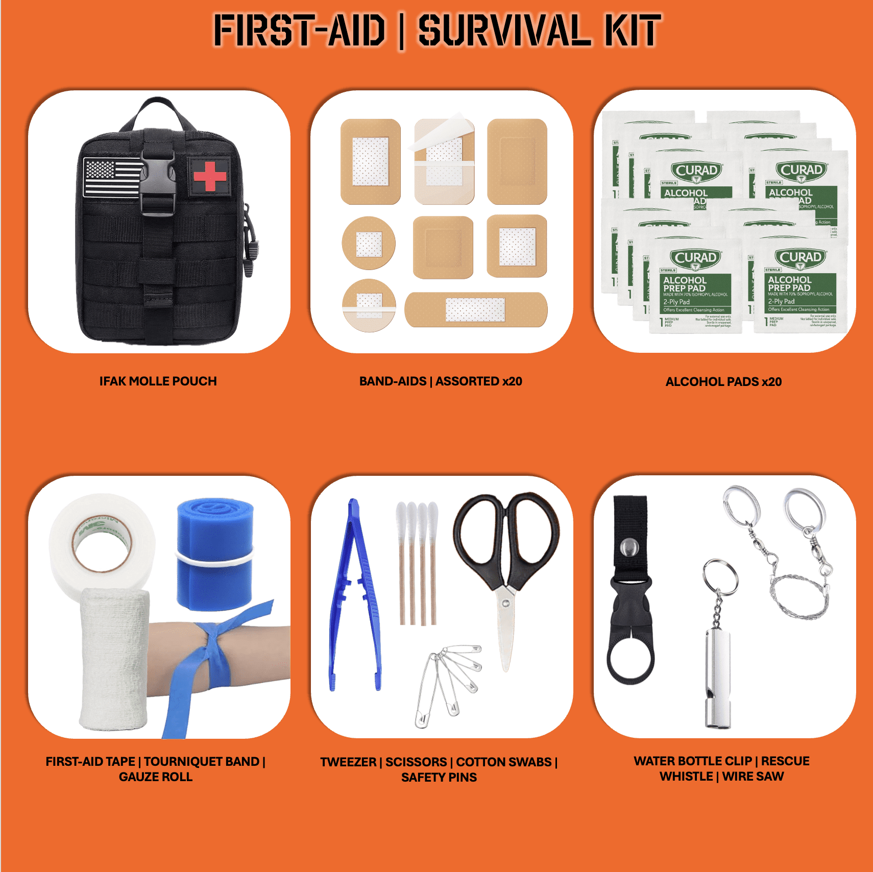 Customization: THE SOLO is a versatile and comprehensive survival kit, but personalization is key. You are encouraged to add specific personal items like Rx/OTC medication, Rx glasses, and pre-filled water bottles.