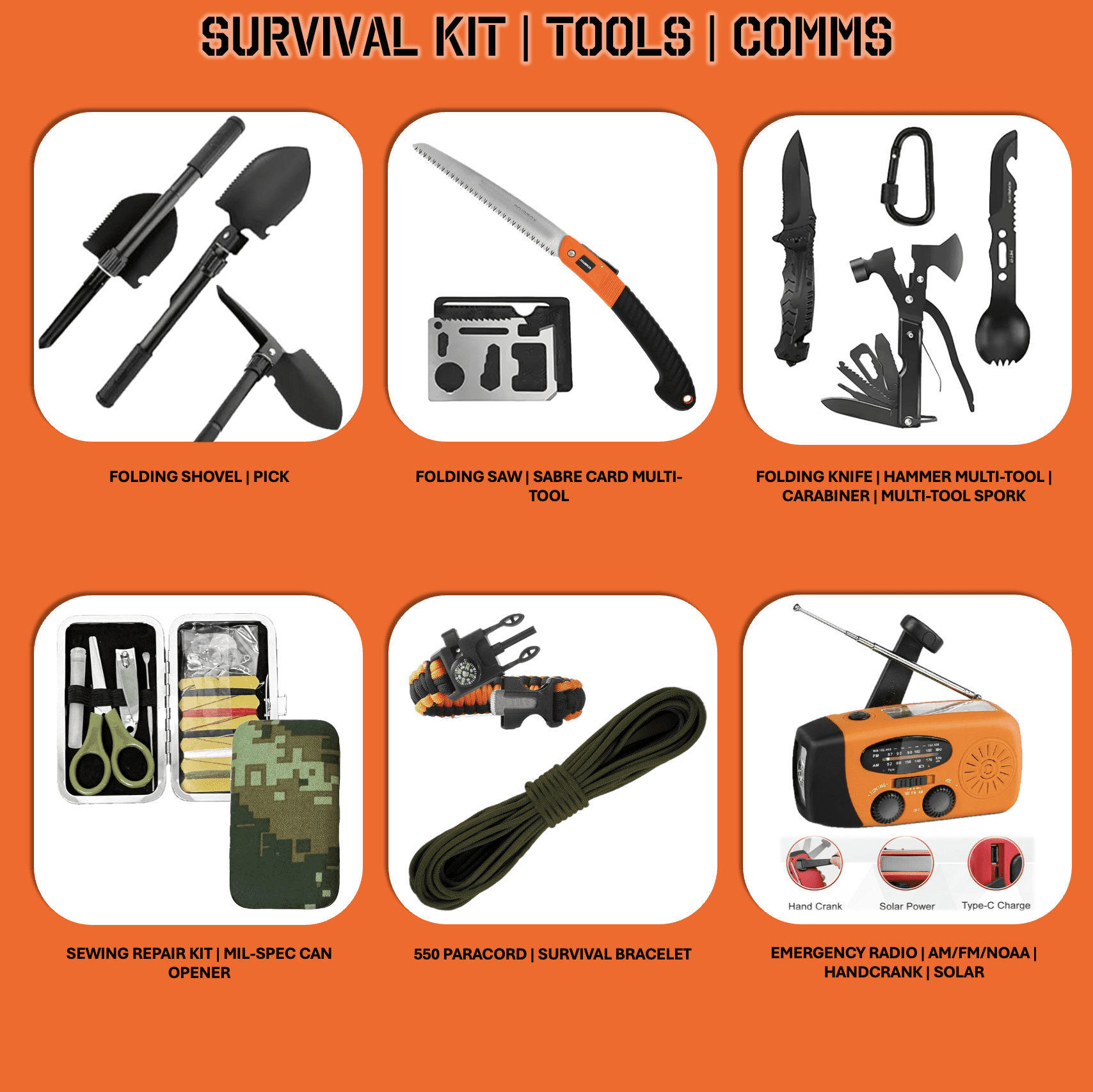 - Radio AM/FM/NOAA | Solar Hand Crank